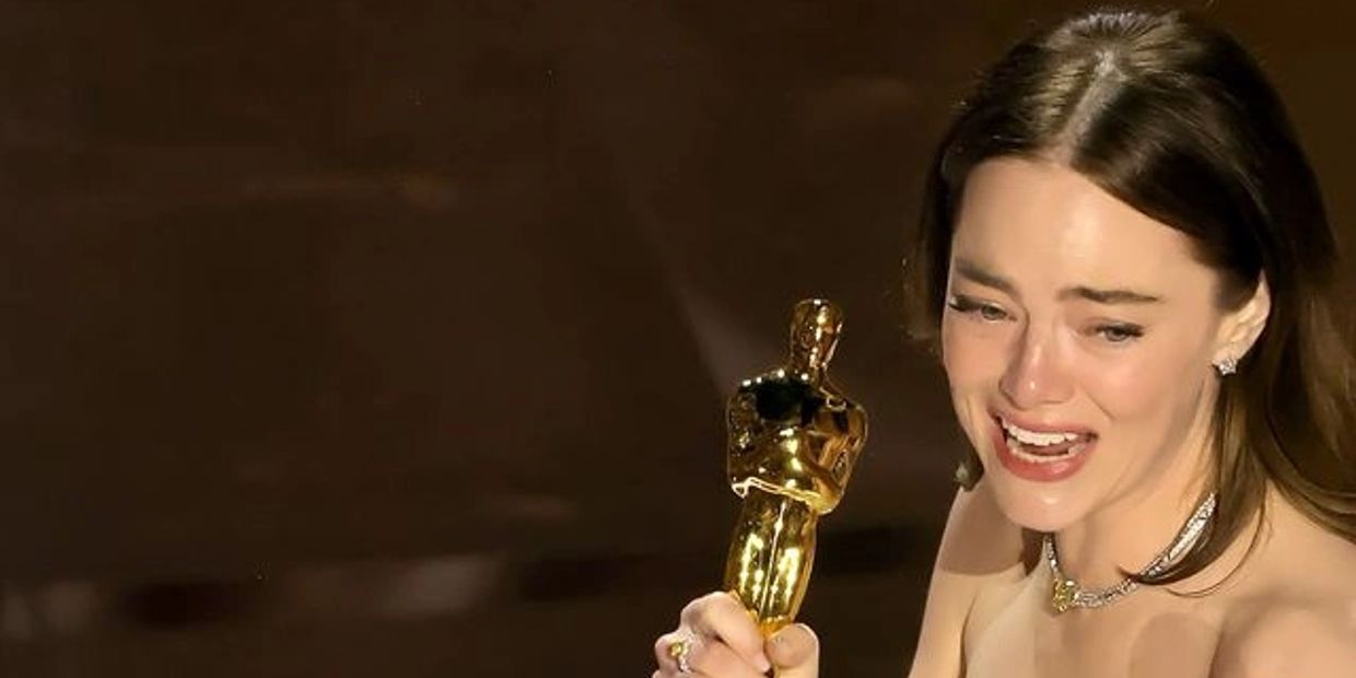 Everyone believed it but perhaps the only one who didn't was her, Emma Stone, who as soon as she heard her name spoken by Michelle Yeoh appeared tenderly incredulous and stunned.